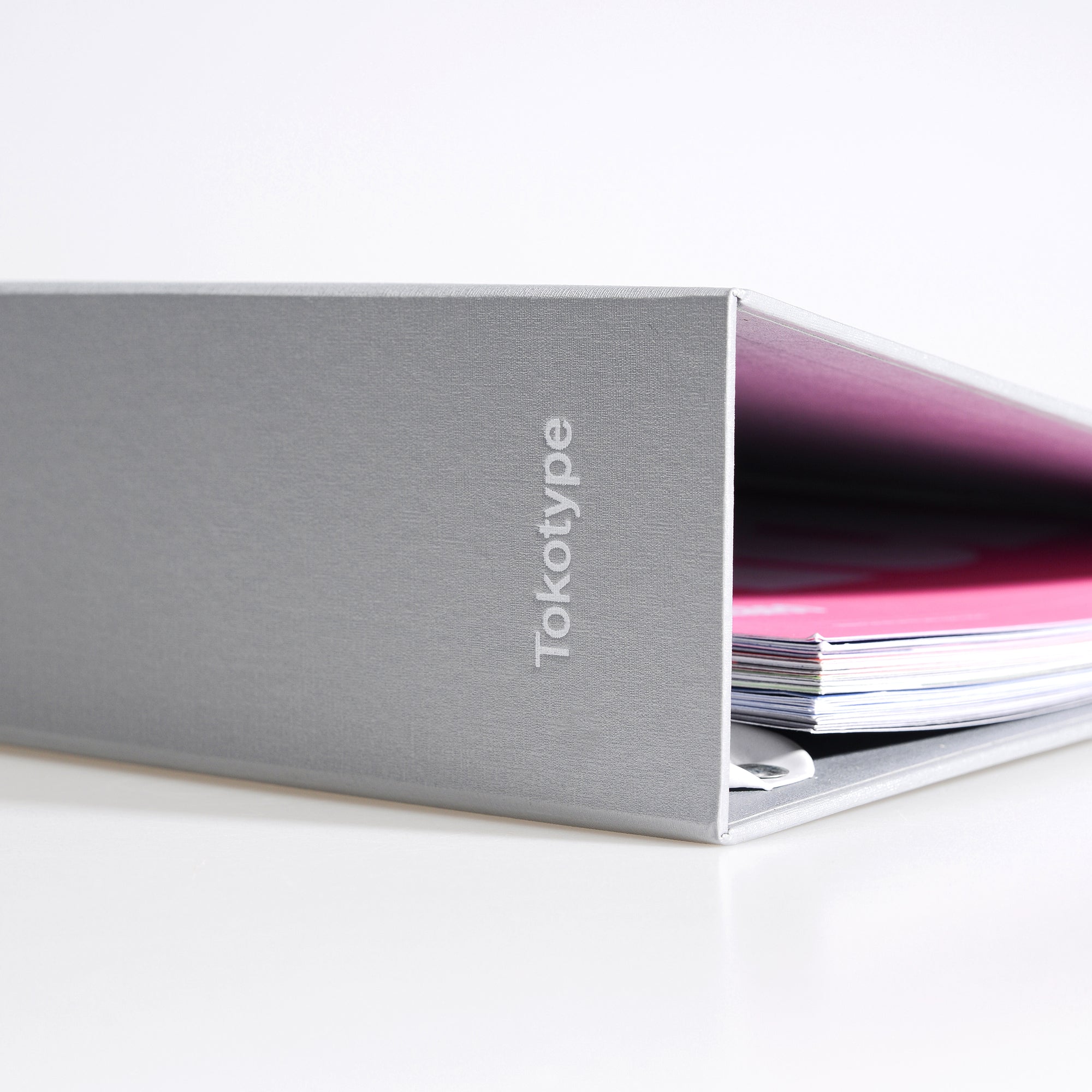 The Tokotype Specimen Archives Binder was designed to provide a safe and secure way of storing and archiving our type specimen sheets. This classic grey binder has a four-hole, powder-coated ring style for storing type specimen sheet collections safely. It is the perfect way to keep the sheets tidy and accessible.
