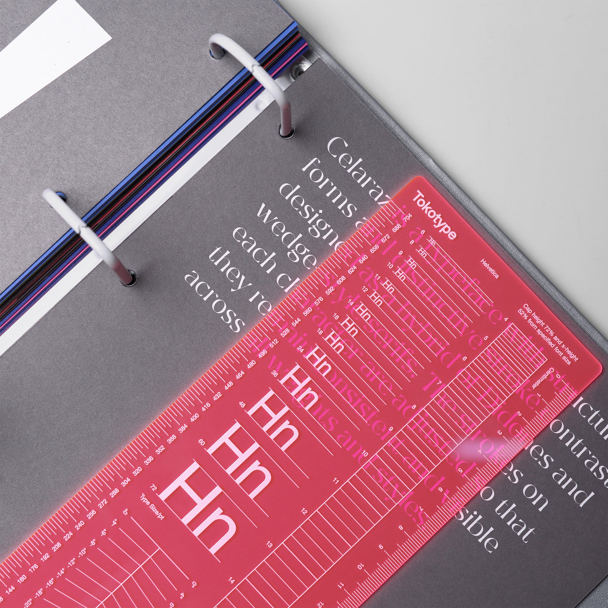 The type measurement is an essential tool for graphic designers and typographers. Made from durable pink plastic, this ruler is perfect for measuring type size and layout for any design projects. With clear markings and a perfect gauge to help accurately measure type, this tool will become a must-have for any designer.